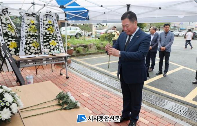 [½Ã»çÁ¾ÇսŹ® = ¿À½ÂÅà ±âÀÚ] ±è»ê ¹«¾È±º¼ö°¡ 24ÀÏ ¹«¾È±³À°Áö¿øÃ» ¾Õ¿¡ ¸¶·ÃµÈ ¼¿ï ¼ÀÌÃÊ ±³»çÀÇ Ãß¸ð°ø°£À» ¹æ¹®ÇØ °íÀÎÀÇ ¸íº¹À» ºô¾ú´Ù.