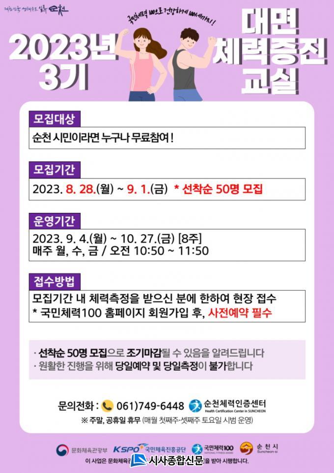 ½Ã¹ÎµéÀÇ ³ôÀº °ü½É°ú È£ÀÀ¿¡ ÈûÀÔ¾î À̹ø 3±â´Â 50¸íÀ» ¼±Âø¼øÀ¸·Î ¸ðÁýÇϸç 9¿ù 4ÀϺÎÅÍ 10¿ù 27ÀϱîÁö 8ÁÖ°£, ÁÖ 3ȸ(¿ù¤ý¼ö¤ý±Ý) ¿ÀÀü 10½Ã 50ºÐºÎÅÍ 1½Ã°£ µ¿¾È ¿î¿µÇÒ ¿¹Á¤ÀÌ´Ù.