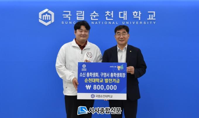 ¼øÃµ´ë ±¸¿µ¼ ÃÑÇлýȸÀåÀº ¡°±×°£ ¸ð±³·ÎºÎÅÍ ¹Þ¾Æ¿Ô´ø »ç¶û¿¡ °¨»ç¸¦ Ç¥ÇöÇϰíÀÚ ¾à¼ÒÇÑ ±Ý¾×ÀÌÁö¸¸ ±âŹÀ» °á½ÉÇÏ¿´°í, ÀÌ °úÁ¤¿¡¼ ÃÑÇлýȸ ÀÓ¿øµé°ú ÁÖº¯ ÇпìµéÀÇ ¶æÀÌ ´õÇØÁ® ÇÔ²² ±âºÎÇÒ ¼ö ÀÖ¾î ¸Å¿ì °¨»çÇÏ´Ù¡±¶ó¸ç ¡°¼øÃµ´ëÇб³°¡ ±Û·ÎÄôëÇÐ30 ¼±Á¤À¸·Î ´õ ³ôÀÌ ºñ»óÇϱ⸦ ¿¸ÁÇÏ´Â ÇлýµéÀÇ °ü½É°ú ÀÇÁöµµ ÇÔ²² ÀüÇÑ´Ù.¡±¶ó°í ¹àÇû´Ù.