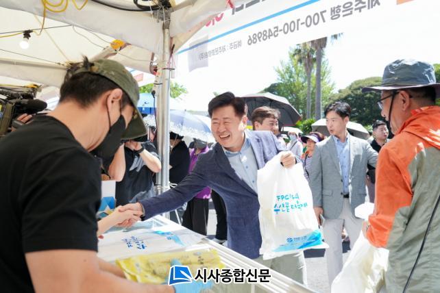 µµ¹Î°ú °øÁ÷ÀÚµéÀÌ ÈûÀ» ¸ð¾Æ ±¹¹ÎµéÀÌ Á¦ÁÖ¼ö»ê¹°À» ¾È½ÉÇϰí Áñ±æ ¼ö ÀÖµµ·Ï ¾Ë·Á, ħüµÈ ¼ö»ê¾÷°è¿¡ Ȱ·ÂÀ» ºÒ¾î³Ö°í Áö¿ª ¾î¾÷ÀεéÀÌ ¾ÈÁ¤ÀûÀ¸·Î Ȱµ¿Çϵµ·Ï µÞ¹ÞħÇÏ·Á´Â ÃëÁö¿¡¼ À̹ø Çà»ç¸¦ ±âȹÇß´Ù. Á¦ÁÖ¼ö»ê¹° ¼ÒºñÃËÁø Çà»ç¿¡¼´Â ¿Áµ¼, °¥Ä¡, °íµî¾î, ¼ÕÁú»ïÄ¡, ÀÚ¼÷¼Ò¶ó µîÀ» ½ÃÁß °¡°ÝÀÇ 30% ÀÌ»ó ÇÒÀÎ ÆÇ¸ÅÇÑ´Ù.