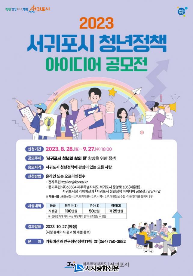 °ø¸ð½Ã»ó ±Ô¸ð´Â ¡âÃÖ¿ì¼ö 1°³ÆÀ 100¸¸¿ø ¡â¿ì¼ö 1°³ÆÀ 50¸¸¿ø ¡âÀå·Á 2°³ÆÀ °¢25¸¸¿øÀ¸·Î ÃÑ200¸¸¿øÀÇ ½Ã»ó±ÝÀÌ ¼ö¿©µÈ´Ù. ±âŸ ÀÚ¼¼ÇÑ »çÇ×Àº ¼±ÍÆ÷½Ã ±âȹ¿¹»ê°ú Àα¸Ã»³âÁ¤Ã¥TFÆÀ(¢Ï760-3882) ¶Ç´Â ¼±ÍÆ÷½Ã ȨÆäÀÌÁö(www.seogwipo.go.kr)¸¦ ÅëÇØ È®ÀÎÇÒ ¼ö ÀÖ´Ù.