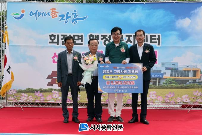 °íÇâ»ç¶û ±âºÎ±Ý ±âŹ½Ä¿¡´Â ¼±æ¼ö ¿Ïµµ±º ±Ý´ç¸éÀåÀ» ºñ·ÔÇÑ ±â°ü»çȸ´ÜüÀå 12¸íÀÌ Âü¼®Çß´Ù. ±Ý´ç¸é ¹æ¹®´ÜÀº °íÇâ»ç¶û±âºÎ±Ý 500¸¸¿øÀ» ±âŹÇÏ¿© ȸÁø¸é°ú ±Ý´ç¸éÀÇ ³²´Ù¸¥ ¿ìÈ£°ü°è¸¦ º¸¿©ÁÖ¾ú´Ù.