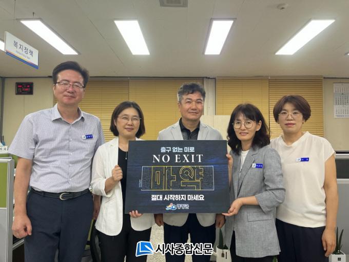 [½Ã»çÁ¾ÇսŹ® = ¿À½ÂÅà ±âÀÚ] ¿µ±¤±º »çȸº¹Áö°ú(°úÀå °µÎ¿ø)´Â Áö³ 22ÀÏ ¸¶¾àÁßµ¶ÀÇ À§Ç輺¿¡ ´ëÇÑ °æ°¢½ÉÀ» °íÃë, ¸¶¾à¹üÁ˸¦ ¿¹¹æÇÏÀÚ´Â ÃëÁöÀÇ ¡®³ë ¿¢½ÃÆ®(NO EXIT)¡¯¸±·¹ÀÌ Ä·ÆäÀο¡ µ¿ÂüÇß´Ù.