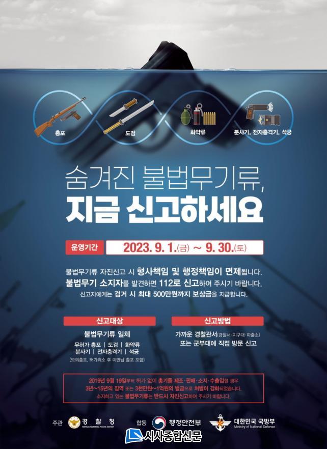 ºÒ¹ý¹«±â·ù ÀÚÁø½Å°í ´ë»óÀº Çã°¡ ¾øÀÌ ¼ÒÁöÇϰí Àְųª ¼ÒÁö Çã°¡°¡ Ãë¼ÒµÈ Ãѱâ, Ⱦà·ù(Ⱦà‧Æø¾à‧½Çź‧Æ÷ź µî), µµ°Ë, ºÐ»ç±â, ÀüÀÚÃæ°Ý±â, ¼®±Ã µî ºÒ¹ý¹«±â·ù ÀÏüÀÌ´Ù.