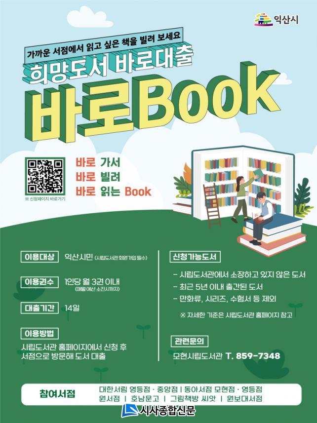 ÀÍ»ê½Ã´Â ¹Ù·ÎºÏ ¼ºñ½º Âü¿© ¼Á¡ÀÌ ±âÁ¸ 6°³¼Ò¿¡¼ 8°³¼Ò·Î, ¿ù ¿¹»ê Çѵµ¾×Àº ±âÁ¸ 1,000¸¸¿ø¿¡¼ 1,500¸¸¿øÀ¸·Î Áõ°¡Çß´Ù°í 30ÀÏ ¹àÇû´Ù. ¹Ù·ÎºÏ ¼ºñ½º´Â ÀÐ°í ½ÍÀº Ã¥ÀÌ µµ¼°ü¿¡ ¾øÀ» ¶§ ÇØ´ç µµ¼¸¦ Çù¾àµÈ Áö¿ª ¼Á¡¿¡¼ ¹Ù·Î ºô·Áº¼ ¼ö ÀÖ´Â ¼ºñ½º´Ù. ÀÍ»ê ½Ã¹ÎÀ̶ó¸é ´©±¸³ª 1ÀÎ´ç ¿ù ÃÖ´ë 3±Ç±îÁö ½Åû °¡´ÉÇÏ¸ç ´ëÃâÇÑ µµ¼´Â 14ÀÏ À̳»¿¡ ÇØ´ç ¼Á¡À¸·Î ¹Ý³³ÇÏ¸é µÈ´Ù.