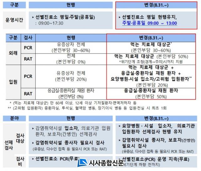 º¸°Ç¼Ò ¼±º°Áø·á¼ÒÀÇ ÆòÀÏ ¿î¿µ½Ã°£Àº ÇöÇà´ë·Î ¿ÀÀü 9½ÃºÎÅÍ ¿ÀÈÄ 5½Ã 30ºÐ±îÁö À¯ÁöÇϰí, ÁÖ¸»°ú °øÈÞÀÏ ¿î¿µ½Ã°£Àº ¿ÀÀü 9½ÃºÎÅÍ ¿ÀÈÄ 1½Ã±îÁö·Î Á¶Á¤ÇÑ´Ù. 2020³â 1¿ù 31ÀÏ ¼±º°Áø·á¼Ò ¿î¿µ ÀÌÈÄ 3³â 7°³¿ù ¸¸¿¡ Á¶Á¤µÇ´Â Á¶Ä¡·Î, °¨¿°º´ µî±ÞÀº ÇÏÇâµÆÁö¸¸ ¡ã¿ä¾çº´¿ø¡¤½Ã¼³ ÀÔ¼ÒÀÚ, ÀÇ·á±â°ü ÀÔ¿øÈ¯ÀÚ ¼±Á¦°Ë»ç´Â ÇöÇà À¯ÁöµÊ¿¡ µû¶ó ¡ã°¨¿°Ãë¾à½Ã¼³ Á¾»çÀÚ, º¸È£ÀÚ(°£º´ÀÎ)¿¡ ´ëÇØ ÇÊ¿ä ½Ã °Ë»ç¸¦ Áö¿øÇÑ´Ù.