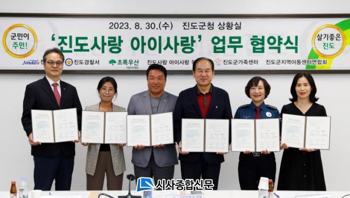 À̳¯ ¾÷¹«Çù¾à½Ä¿¡´Â ¡ãÁøµµ±º ¡ãÁøµµ°æÂû¼ ¡ãÃÊ·Ï¿ì»ê¾î¸°ÀÌÀç´Ü Àü³²Áö¿ªº»ºÎ ¡ãÁøµµ»ç¶û ¾ÆÀÌ»ç¶û ÃßÁø À§¿øÈ¸ ¡ãÁøµµ±º °¡Á·¼¾ÅÍ ¡ãÁøµµ±º Áö¿ª¾Æµ¿¼¾ÅÍ¿±ÇÕȸ µî 6°³ ±â°üÀÌ Âü¿©Çß´Ù.