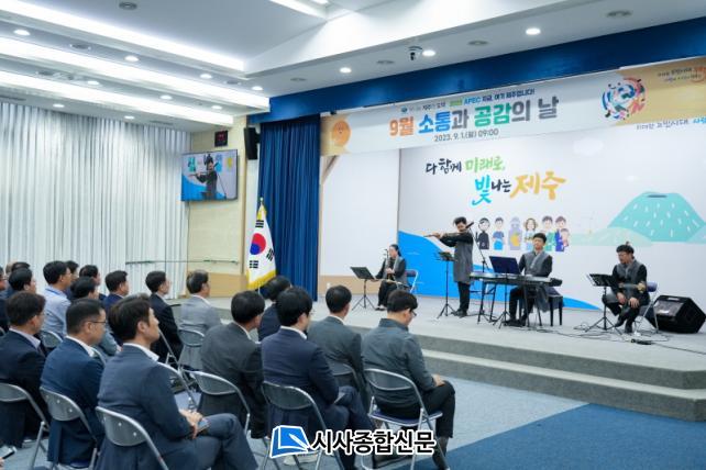 Á¦ÁÖÆ¯º°ÀÚÄ¡µµ´Â 1ÀÏ ¿ÀÀü 9½Ã Á¦ÁÖµµÃ» ޶óȦ¿¡¼ 9¿ù ¼ÒÅë°ú °ø°¨ÀÇ ³¯À» °³ÃÖÇÏ°í ½Å±Ô °ø¹«¿øµé°ú ¼ÒÅëºê·±Ä¡¸¦ °¡Á³´Ù°í ¹àÇû´Ù. ¸Å¿ù 1ÀÏ Ã¹ Çà»ç·Î ÁøÇàµÇ´Â ¡®¼ÒÅë°ú °ø°¨ÀÇ ³¯¡¯Àº Çà»ç¸íó·³ ¼¼´ë, ¾÷¹«, °ø°£¿¡ ±¸¾Ö¹ÞÁö ¾Ê°í µµ ¼Ò¼Ó °øÁ÷ÀÚ ¸ðµÎ°¡ Âü¿©ÇØ ¼ÒÅë°ú °ø°¨À» È®»êÇϴµ¥ ÁýÁßÇØ¿Ô´Ù.