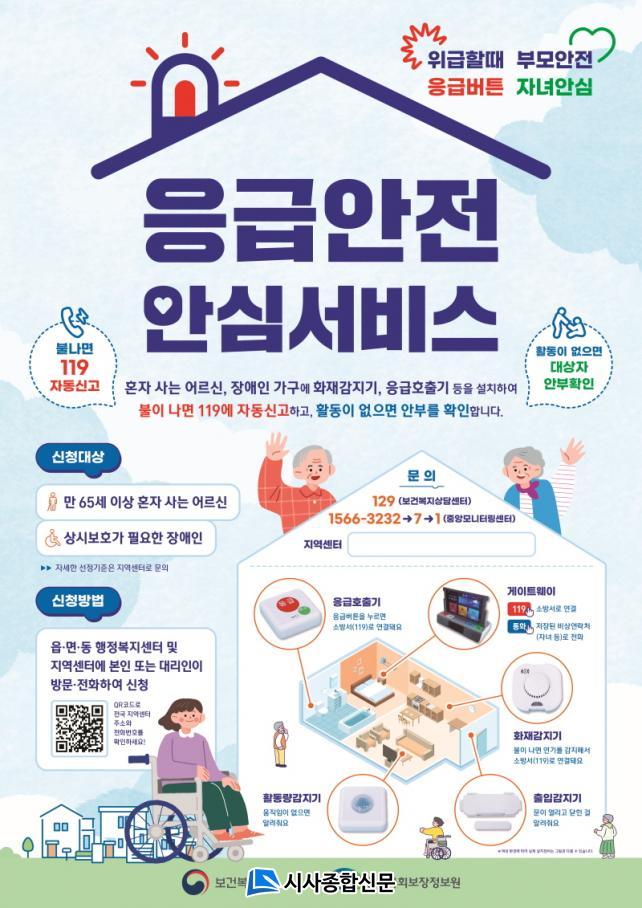 ÀÌ ¼ºñ½º´Â ´ë»óÀÚ °¡Á¤¿¡ ÀÀ±ÞÈ£Ãâ±â, Ȱµ¿¡¤ÈÀ硤ÃâÀÔ¹® °¨Áö±â µîÀÇ Àåºñ¸¦ ¼³Ä¡ÇÏ¿© ÀÀ±Þ»óȲ ¹ß»ý ½Ã ÀÀ±ÞÈ£Ãâ ¹öưÀ» ´©¸£¸é ¼Ò¹æ¼(119)¿¡ ÀÚµ¿ ½Å°íµÇ°í, ÀÀ±Þ°ü¸®¿ä¿øÀÌ »ó½Ã¸ð´ÏÅ͸µÀ¸·Î 365ÀÏ ´ë»óÀÚÀÇ ¾ÈÀüÀ» Áö۰í ÀÖ´Ù.