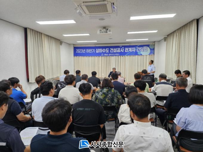 »óÇϼöµµ»ç¾÷¼Ò ȸÀǽǿ¡¼ ¿¸° °øÁ¤º¸°íȸ¿¡´Â »óÇϼöµµ»ç¾÷¼Ò °ü°èÀÚ 7¸í°ú °ø»ç ÇöÀå´ë¸®ÀÎ, ½Ã°ø»ç ´ëÇ¥ÀÚ, °¨¸®´Ü µî 50¿© ¸íÀÌ Âü¼®Çß´Ù.