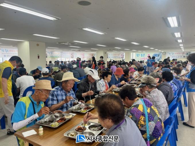 ÇÑÆí, ¸ÅÁÖ 1ȸ ¾î¸£½Åµé¿¡°Ô ¹«·á Á¡½É½Ä»ç¿Í Àç´É±âºÎ °ø¿¬À» ÆîÄ£ »ç¶ûÀÇ ¹äÂ÷´Â »ó¹Ý±â¿¡ 14Â÷·Ê ¿î¿µÇØ 8,400¿©¸í¿¡°Ô Á¡½É½Ä»ç¸¦ Á¦°øÇß´Ù.