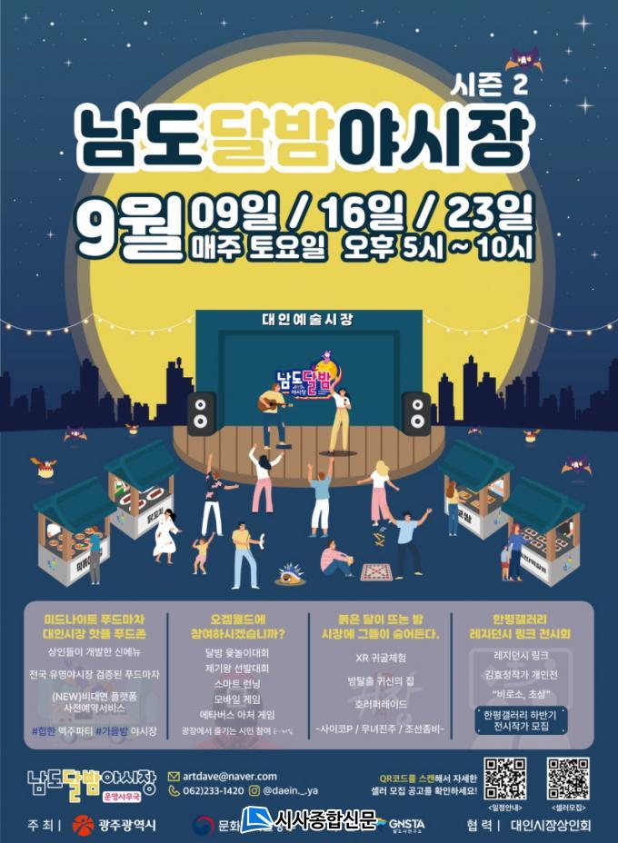 ±¤ÁÖ±¤¿ª½Ã(½ÃÀå °±âÁ¤)´Â ´ëÀο¹¼ú½ÃÀå ¡®³²µµ´Þ¹ã¾ß½ÃÀå ½ÃÁð2¡¯¸¦ 9ÀϺÎÅÍ ¸ÅÁÖ Åä¿äÀÏ ¿ÀÈÄ 5½ÃºÎÅÍ ¹ã 10½Ã±îÁö 3Â÷·Ê ¿î¿µÇÑ´Ù.