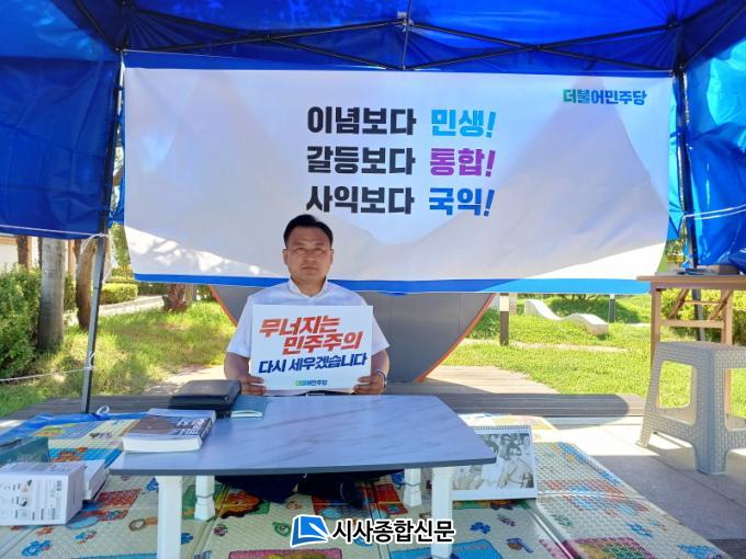 ¸ñÆ÷½Ã Æòȱ¤Àå¿¡ õ¸·À» ¼³Ä¡ÇÏ°í ´Ü½ÄÀ» ½ÃÀÛÇÑ ±è¸í¼± ºÎÀÇÀåÀº ¼º¸í¼¸¦ ÅëÇØ ¡°Áö±Ý, ¿ì¸® ´ëÇѹα¹ÀÌ, ¿ì¸® ±¹¹ÎÀÇ »îÀÌ Ã³ÂüÇÏ°Ô ¹«³ÊÁö°í ÀÖ´Ù.
