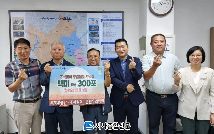 [½Ã»çÁ¾ÇսŹ® = Àå¹Î±Ô ±âÀÚ] ¼øÃµ½Ã(½ÃÀå ³ë°ü±Ô)´Â Ãß¼®À» ¸Â¾Æ Áö³ 8ÀÏ ¢ßºÏºÎ³ó»ê(´ëÇ¥ ¼Å¿), ¢ßÇØ´ÞÀÌ(´ëÇ¥ ½ÅöÈ), ¼øÃµ¿ì¸®º´¿ø(º´¿øÀå ±èÇÑ¿õ)°ú 750¸¸ ¿ø »ó´çÀÇ ¹é¹Ì(10kg) 300Æ÷ ±âʽÄÀ» °¡Á³´Ù.