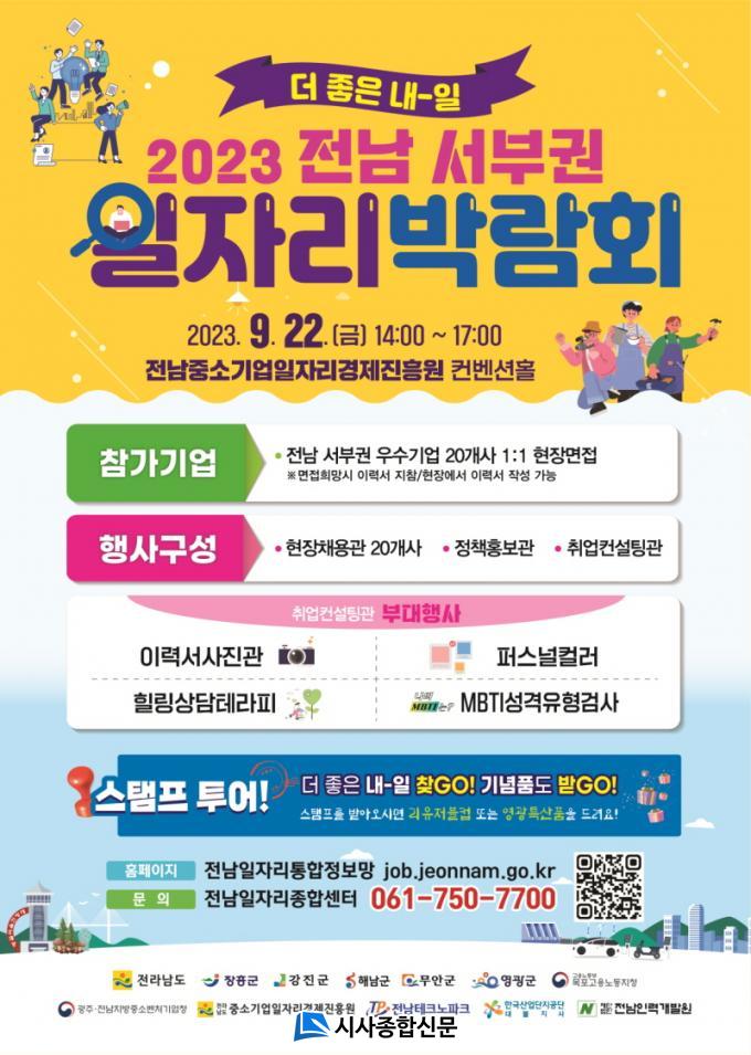 Àü³²Áß¼Ò±â¾÷ÀÏÀÚ¸®°æÁ¦ÁøÈï¿ø°ú Àü³²Àη°³¹ß¿øÀÌ ÁÖ°üÇÏ´Â À̹ø ÀÏÀÚ¸® ¹Ú¶÷ȸ´Â Àü¶ó³²µµ, ¹«¾È±º, ÀåÈﱺ, °Áø±º, ÇØ³²±º, ¿µ±¤±ºÀ» ºñ·ÔÇØ ¸ñÆ÷°í¿ë³ëµ¿Áöû, Çѱ¹»ê¾÷´ÜÁö°ø´Ü´ëºÒÁö»ç µîµµ ÇÔ²² Âü¿©ÇÏ¿© ±â¾÷ü-±¸Á÷ÀÚ °£ Àη¼ö±Þ ºÒÀÏÄ¡ ÇØ¼Ò¿Í Ãë¾÷ ±âȸ È®´ëÀÇ ÀåÀÌ µÉ Àü¸ÁÀÌ´Ù.
