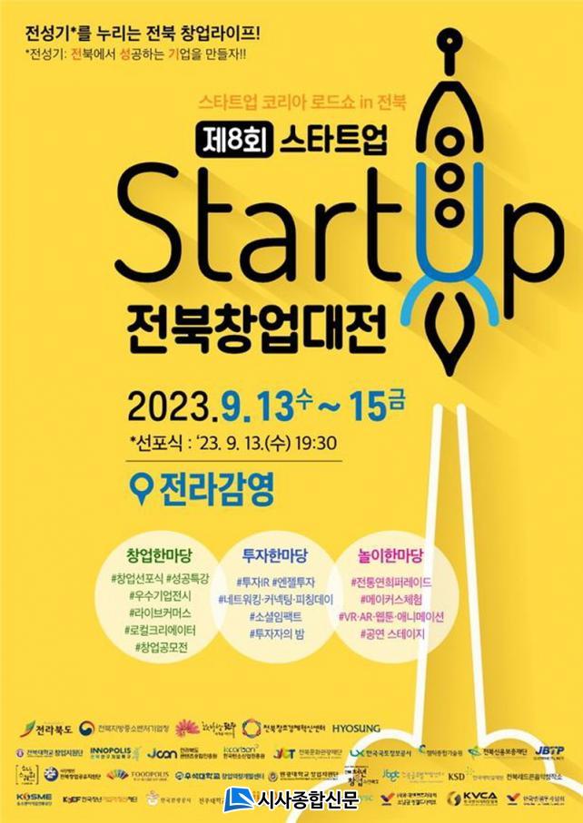 ÀüºÏµµ¿Í ÀüºÏÁö¹æÁß¼Òº¥Ã³±â¾÷ûÀº 13ÀÏ Àü¶ó°¨¿µ¿¡¼ 'Á¦8ȸ ÀüºÏ â¾÷´ëÀü' ¼±Æ÷½ÄÀ» °¡Á³´Ù. À̳¯ ¼±Æ÷½ÄÀº 100¿©°³ ½ºÅ¸Æ®¾÷°ú ¹Î°£ÅõÀÚ»ç µî 500¿©¸íÀÌ Âü¿©ÇÑ °¡¿îµ¥ ÅõÀÚ Çù¾à½Ä°ú À¯°øÀÚ Æ÷»ó, ¶óÀ̺êÄ¿¸Ó½º µîÀ¸·Î ÁøÇàµÆ´Ù.