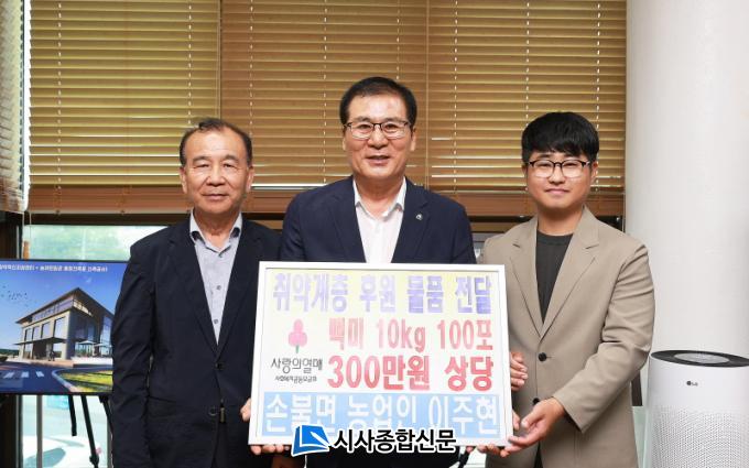 13ÀÏ ÇÔÆò±º¿¡ µû¸£¸é À̳¯ ÇÔÆò±º ¼ÕºÒ¸é ±Ã»ê2¸® ÀÌÀå ÀÌÁÖÇö ¾¾°¡ Ãë¾à°èÃþÀ» À§ÇØ Á÷Á¢ Àç¹èÇÑ À¯±â³ó ½Ò 10kg 100Æ÷¸¦ ±âºÎÇß´Ù. 2020³âºÎÅÍ ¸Å³â ¾î·Á¿î ÀÌ¿ôÀ» À§ÇØ ½ÒÀ» ±âºÎÇØ ¿Â ÀÌÁÖÇö¾¾´Â ¡°Ãß¼®À» ¸ÂÀÌÇØ ÁÖÀ§ÀÇ ¾î·Á¿î ÀÌ¿ô°ú µû¶æÇÑ Á¤À» ³ª´©°íÀÚ ±âºÎÇß´Ù¡±¸ç ¡°¾ÕÀ¸·Îµµ Ãë¾à°èÃþ¿¡ ²ÙÁØÇÑ ³ª´®À» ½ÇÃµÇØ ÀÛ°Ô³ª¸¶ ÈûÀÌ µÇ°Ú´Ù¡±°í ¸»Çß´Ù.