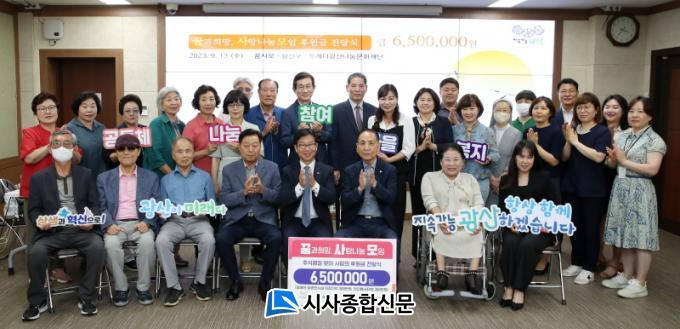 [½Ã»çÁ¾ÇսŹ® = ¿À½ÂÅà ±âÀÚ] ¡®²Þ°úÈñ¸Á, »ç¶û³ª´®¸ðÀÓ(ȸÀå ±è¸í¹Î, ÀÌÇÏ ²Þ»ç¸ð)¡¯ÀÌ 13ÀÏ ¹ÎÁ· ¸íÀýÀÎ Ãß¼®À» ¸Â¾Æ ±¤»ê±¸ »çȸº¹Áö½Ã¼³ µîÀ» À§ÇÑ ÈÄ¿ø±Ý 650¸¸ ¿øÀ» Åõ°Ô´õ±¤»ê ³ª´®¹®ÈÀç´Ü¿¡ ÁöÁ¤ ±âŹÇß´Ù.