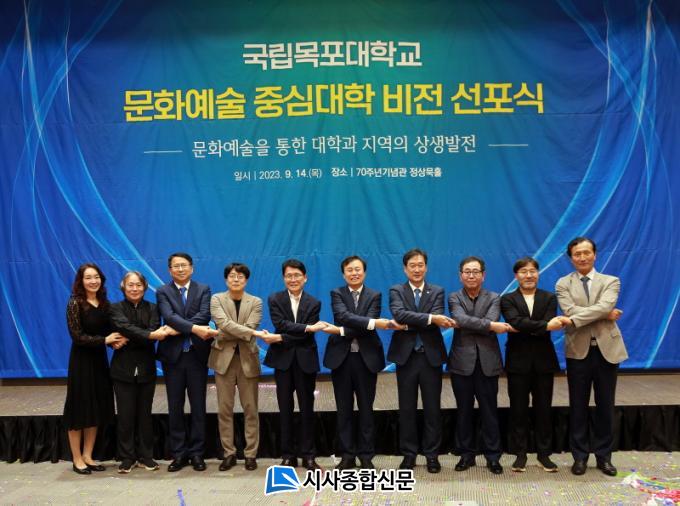 ¡®2023 ¸ñÆ÷¹®Çйڶ÷ȸ¡¯ ÁÖ°£À» ¸ÂÀÌÇØ ±¹¸³¸ñÆ÷´ë 70Áֳ⠱â³ä°ü¿¡¼ °³ÃÖµÈ ¡®¹®È¿¹¼ú Á߽ɴëÇÐ ºñÀü ¼±Æ÷½Ä¡¯ÀÌ ¼ÛÇÏö ±¹¸³¸ñÆ÷´ë ÃÑÀå, µµÁ¾È¯ ±¹È¸ÀÇ¿ø, À̼ø¿ë ¸ñÆ÷MBC »çÀå, ±è¿µ½Å Àü³²°ü±¤Àç´Ü ´ëÇ¥ÀÌ»ç, ±èÁر⠱¤Áֽø³¹Ì¼ú°üÀå µî ¹®È¿¹¼ú °ü°èÀÚµé°ú Çлý ¹× ±³Á÷¿øµéÀÌ Âü¿©ÇÑ °¡¿îµ¥ ¼ºÈ²¸®¿¡ °³ÃֵǾú´Ù.