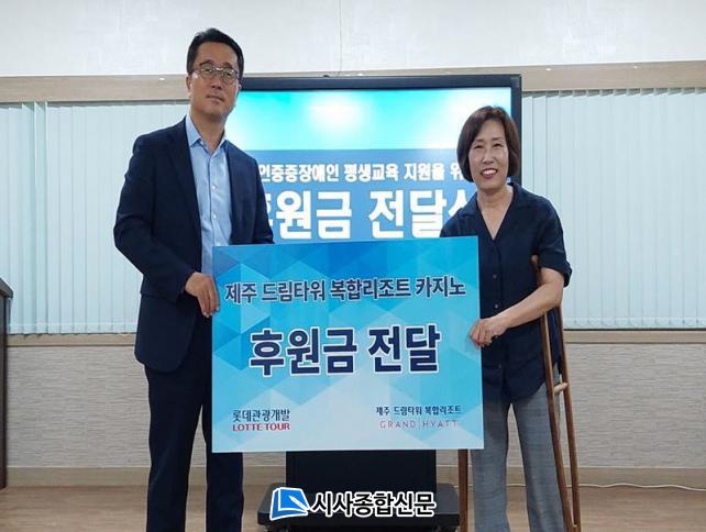 [½Ã»çÁ¾ÇսŹ® = °í¼º¹Î ±âÀÚ] ·Ôµ¥°ü±¤°³¹ß(ÁÖ)(´ëÇ¥ ±è±âº´,¹éÇö,±èÇÑÁØ)Àº ¿À´Ã 14ÀÏ Á¦ÁÖÀå¾ÖÀξ߰£Çб³¸¦ ¹æ¹®ÇØ ¼ºÀÎ ÁßÁõÀå¾ÖÀÎÀÇ Æò»ý±³À° Áö¿øÀ» À§ÇÑ ÈÄ¿ø±ÝÀ» Àü´ÞÇß´Ù.