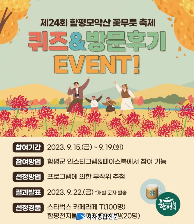 À̹ø À̺¥Æ®´Â ÄûÁîÀ̺¥Æ®¿Í ¹æ¹® Èıâ ÀÛ¼ºÀ» ÅëÇØ Âü¿©ÇÒ ¼ö ÀÖ´Ù. ÄûÁîÀ̺¥Æ®´Â Á¦½ÃµÈ À̹ÌÁö¸¦ º¸°í ÇÔÆòÀÇ ´ëÇ¥ ÃàÁ¦¸íÀ» ¸ÂÈ÷´Â °ÍÀÌ¸ç ¹æ¹® Èıâ À̺¥Æ®´Â ²É¹«¸© ÃàÁ¦¸¦ ¹æ¹®ÇÑ »çÁøÀ» °³ÀÎ SNS¿¡ ¾÷·ÎµåÇϰí ÀÎÁõ»çÁøÀ» Á¦ÃâÇÏ¸é µÈ´Ù.