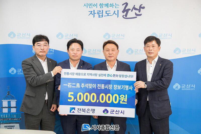 [½Ã»çÁ¾ÇսŹ® = ¿À½ÂÅà ±âÀÚ] ±º»ê½Ã´Â 19ÀÏ ÀüºÏÀºÇà(ÀºÇàÀå ¹éÁ¾ÀÏ)ÀÌ Ãß¼® ¸íÀýÀ» ¸Â¾Æ ÀüÅë½ÃÀå À庸±â ¹°Ç°(500¸¸¿ø »ó´ç)À» Àü´ÞÇß´Ù°í ¹àÇû´Ù.