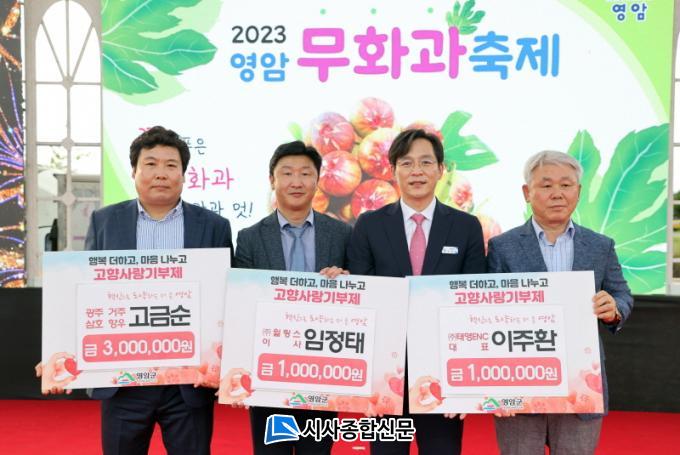 Ãß¼®±îÁö 13¸íÀÇ ±âºÎÀÚµéÀÌ 3,000¸¸ ¿ø »ó´çÀÇ ±âºÎ Àǻ絵 ¹àÇô ¸íÀýÀ» ¾ÕµÐ Áö¿ª»çȸÀÇ ºÐÀ§±â¸¦ ÈÆÈÆÇÏ°Ô Çß´Ù. 14ÀÏ ¡®¼È£¸é¹ÎÀdz¯¡¯¿¡´Â ¼È£¸é ¼ºÀ縮 Ãâ½Å ÀÌÇкÀ ¾¾¿Í Á¶¿µ¼ø ¢ßÅ¿µENC ´ëÀü ´ëÇ¥°¡ °¢°¢ 500¸¸ ¿øÀ», ¼Õ´ë¼º ¢ß¼È£»êÀü ´ëÇ¥°¡ 200¸¸ ¿øÀ», ±èÀÎ½Ä Àç°æ±¤ÁÖÀü³²½Ã¡¤µµ¹Îȸ »óÀÓºÎȸÀåÀÌ 100¸¸ ¿øÀ» ±âºÎÇß´Ù.