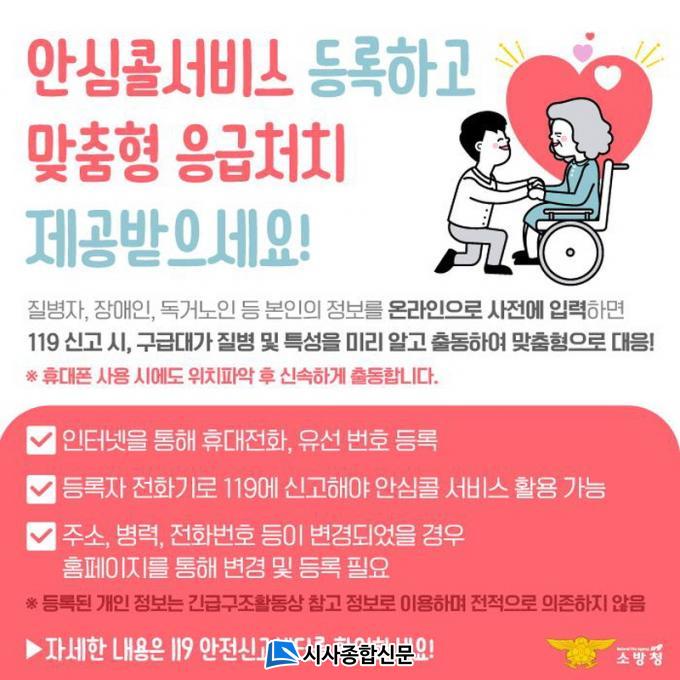 | °Áø¼Ò¹æ¼, 119 ¾È½ÉÄÝ ¼ºñ½º µî·Ï È«º¸ |