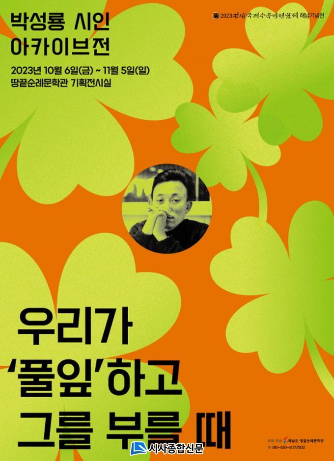 ¡®¿ì¸®°¡ ¡®Ç®ÀÙ¡¯ÇÏ°í ±×¸¦ ºÎ¸¦ ¶§¡¯¸¦ ÁÖÁ¦·Î ¿¸®´Â ¾ÆÄ«À̺êÀü¿¡´Â ±×°£ ¿ÜºÎ¿¡ °ø°³µÈ Àû ¾ø´Â ½ÃÀÎÀÇ »çÁø°ú À°ÇÊ¿ø°í, »óÆÐ µîÀÌ Àü½ÃµÉ ¿¹Á¤ÀÌ´Ù. ¿À´Â 10¿ù 6ÀϺÎÅÍ 1¿ù 5ÀϱîÁö ¶¥³¡¼ø·Ê¹®Çаü ±âȹÀü½Ã½Ç¿¡¼ ¸¸³ªº¼ ¼ö ÀÖ´Ù. °ü¶÷°´µé¿¡°Ô´Â ¹Ú¼º·æ ½ÃÀÎÀÇ ÀÏ´ë±â¿Í ÀÛǰ¼¼°è, Àü½Ã À¯Ç° µîÀ» ÇÑ´«¿¡ º¼ ¼ö ÀÖ´Â µµ·Ïµµ ¹«·á ¹èÆ÷ÇÑ´Ù.