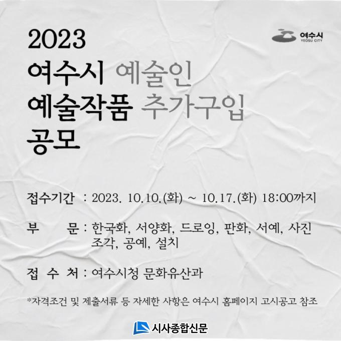 ÀÀ¸ð ÀÚ°ÝÀº °ø°íÀÏ 20ÀÏ ±âÁØ ¿©¼ö½Ã¿¡ ÁÖ¼Ò¸¦ µÎ°í Áö¿ª ³»¿¡¼ ¿¹¼ú Ȱµ¿À» Çϰí ÀÖ´Â ¿¹¼úÀÎÀ¸·Î¼ ¡ã°³ÀÎÀü 2ȸ ÀÌ»óÀÇ °³ÃÖ ½ÇÀû ¡ã±âȹÀü ¶Ç´Â ±×·ìÀü 3ȸ ÀÌ»ó Ãâǰ °æ·Â ¡ãÃÖ±Ù 3³â À̳» Àü±¹ ±Ô¸ð ¹Ì¼ú °ø¸ðÀü 3ȸ ÀÌ»ó ÀÔ»ó µî Çϳª ÀÌ»óÀÇ °æ·ÂÀÌ ÀÖ¾î¾ß ÇÑ´Ù.