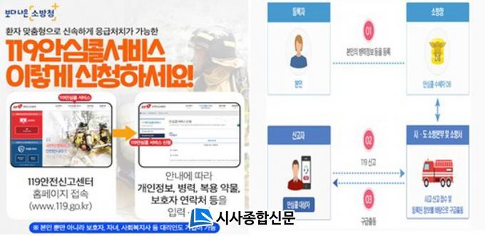 ¡®119¾È½ÉÄÝ ¼ºñ½º¡¯´Â »çÀü¿¡ ÀÔ·ÂµÈ È¯ÀÚÀÇ Á¤º¸¸¦ Ȱ¿ëÇØ ±¸±Þ´ë¿øµéÀÌ ¹Ì¸® Áúº´¡¤Æ¯¼ºÀ» ¾Ë°í ½Å¼ÓÇÑ ÀÀ±Þóġ¿Í º´¿ø À̼ÛÀÌ °¡´ÉÇÑ ¼ºñ½ºÀÌ´Ù. ¶ÇÇÑ »çÀü µî·ÏµÈ º¸È£ÀÚ¿¡°Ô ȯÀÚ º´¿ø ÀÌ¼Û »óȲ ¹× »óŸ¦ ¸Þ½ÃÁö·Î ¹Þ¾Æº¼ ¼ö ÀÖ´Ù.