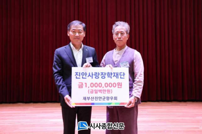 [½Ã»çÁ¾ÇսŹ® = ¿À½ÂÅà ±âÀÚ] Áø¾È»ç¶ûÀåÇÐÀç´Ü(ÀÌ»çÀå ÀüÃἺ)¿¡ Áö¿ªÀÎÀçÀ°¼ºÀ» À§ÇÑ ÈÄ¿øÀÇ ¼Õ±æÀÌ ÀÕµû¸£°í ÀÖ´Â °¡¿îµ¥ ÀçºÎ»ê Áø¾È±ºÇâ¿ìȸ(ȸÀå È«¼øÇÐ)°¡ Áø¾È»ç¶ûÀåÇÐÀç´Ü¿¡ 100¸¸¿øÀÇ ÀåÇбÝÀ» ±âŹÇß´Ù.