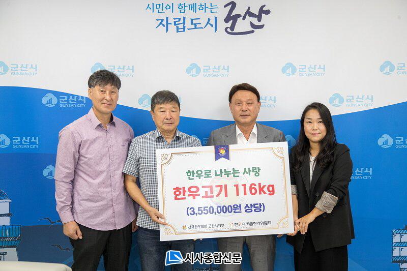 [½Ã»çÁ¾ÇսŹ® = ¿À½ÂÅà ±âÀÚ] ±º»ê½Ã´Â 27ÀÏ (»ç)Àü±¹ÇÑ¿ìÇùȸ ±º»ê½ÃÁöºÎ(ÁöºÎÀå ÀÌ¿µÃ¶)°¡ Ãß¼® ¸íÀýÀ» ¸Â¾Æ ¾î·Á¿î ÀÌ¿ôµéÀ» À§ÇØ ÇÑ¿ì 116kg(355¸¸¿ø »ó´ç)À» ±âŹÇß´Ù°í ¹àÇû´Ù.
