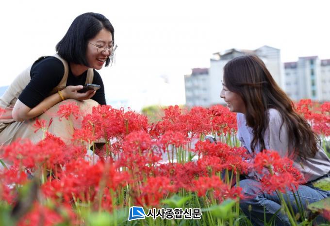 [½Ã»çÁ¾ÇսŹ®] ¿Ï¿¬ÇÑ °¡À»·Î Á¢¾îµç 4ÀÏ °Áø±º °ÁøÀ¾ °í¼º»ç¸¦ ¿À¸£´Â »êÃ¥·Î¿¡ ºÓÀº ²É¹«¸©ÀÌ È°Â¦ ÇǾú´Ù. ´« È£°¿¡ Áñ°Å¿î ³ªµéÀ̰´µéÀÌ ¿¬½Å ÈÞ´ëÆù Ä«¸Þ¶ó ¹öưÀ» ´·¶´Ù.