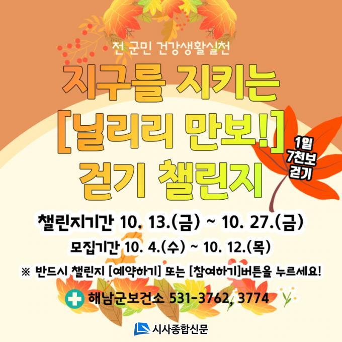 °È±â ¿îµ¿ Ȱ¼ºÈ¸¦ ÅëÇÑ °Ç°ÁõÁøÀ» À§ÇØ ½Ç½ÃµÇ´Â À̹ø 縰Áö´Â Àü ±º¹ÎÀ» ´ë»óÀ¸·Î 10¿ù 13ÀϺÎÅÍ 27ÀϱîÁö ¿öÅ©¿Â ¾ÛÀ» Ȱ¿ëÇØ ¿î¿µµÈ´Ù.