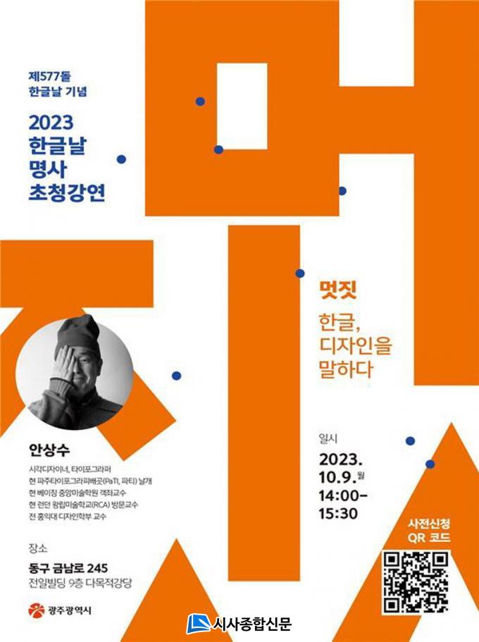| ±¤ÁÖ±¤¿ª½Ã, Çѱ۳¯ ¸í»ç ÃÊû °¿¬ °³ÃÖ ÇÑ±Û Å¸ÀÌÆ÷±×¶óÆÛ ¾È»ó¼ö ¾¾ ¡®¸ÚÁþ ÇѱÛ, µðÀÚÀÎÀ» ¸»ÇÏ´Ù¡¯ ÁÖÁ¦ |