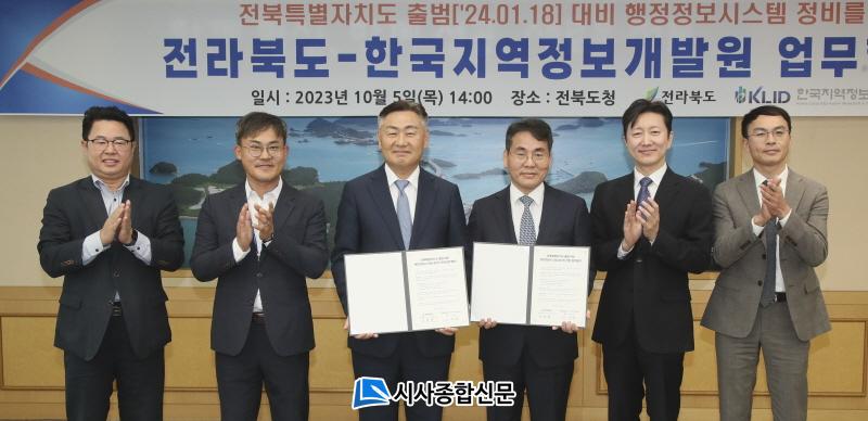 Àü¶óºÏµµ´Â 5ÀÏ µµÃ» ȸÀǽǿ¡¼ ±è°ü¿µ µµÁö»ç¿Í, ÀÌÀ翵 Çѱ¹Áö¿ªÁ¤º¸°³¹ß¿øÀå µîÀÌ Âü¼®ÇÑ °¡¿îµ¥ Àü¶óºÏµµ-Çѱ¹Áö¿ªÁ¤º¸°³¹ß¿ø »óÈ£±â°ü°£ ¾÷¹«Çù¾àÀ» ü°áÇß´Ù.