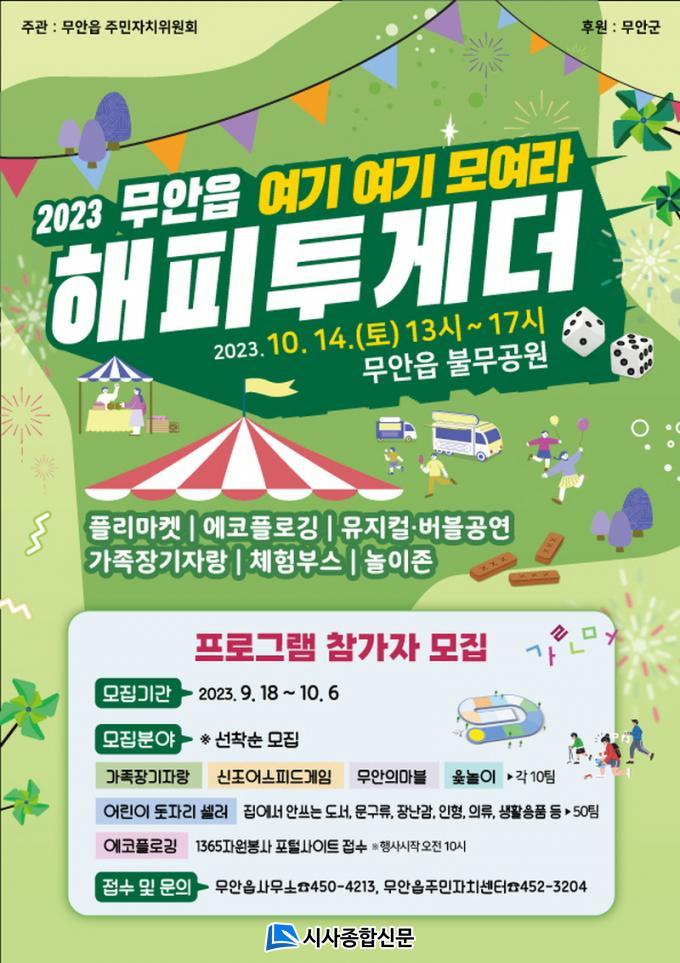 ¹«¾ÈÀ¾ ÁÖ¹ÎÀÚÄ¡À§¿øÈ¸ ÁÖ°üÀ¸·Î °³ÃֵǴ À̹ø Çà»ç´Â ½Å±¸ ¼¼´ë°£ ¼·ÎÀÇ ¹®È¸¦ üÇèÇÏ¸é¼ ÀÌÇØÇÒ ¼ö ÀÖµµ·Ï ¼ÒÅëÀÇ ÀåÀ» ¸¶·ÃÇÏ°í ´õºÒ¾î »ì¾Æ°¡´Â Áö¿ª °øµ¿Ã¼ ¹®È¸¦ Çü¼ºÇϱâ À§ÇÑ ¸ñÀûÀ¸·Î ±âȹµÇ¾úÀ¸¸ç ¿¡ÄÚÇ÷αë, ¾î¸°ÀÌ µ¾ÀÚ¸® Çø®¸¶ÄÏ, °¡Á·Àå±âÀÚ¶û, ¹«¾ÈÀÇ ¸¶ºí°ÔÀÓ, ½ÅÁ¶¾î ½ºÇǵå°ÔÀÓµî ´Ù¾çÇÑ ÁÖ¹ÎÂü¿©Çü ÇÁ·Î±×·¥À¸·Î ÁøÇàµÈ´Ù.