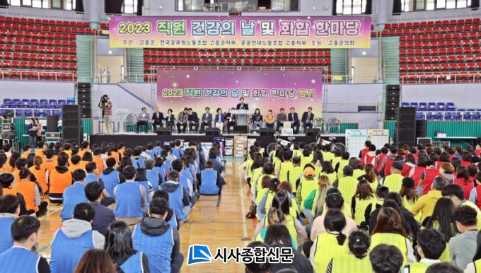 °íÈﱺ, Àü±¹°ø¹«¿ø³ëµ¿Á¶ÇÕ °íÈﱺÁöºÎ, °ø°ø¿¬´ë³ëµ¿Á¶ÇÕ °íÈïÁöºÎ°¡ °øµ¿À¸·Î °³ÃÖÇÏ°í °íÈﱺÀÇȸ¿¡¼ ÈÄ¿øÇÑ À̳¯ Çà»ç´Â Á÷¿øµéÀÇ Ä£¸ñ°ú ÈÇÕÀ» ´ÙÁö´Â µ¿½Ã¿¡ Ȱ±âÂù Á÷Àå ºÐÀ§±â Á¶¼ºÀ» À§ÇØ ¸¶·ÃµÆÀ¸¸ç, ¹Î¿øÀÎÀÇ ºÒÆíÀ» ÃÖ¼ÒÈÇϱâ À§ÇØ ºÎ¼º° ÇʼöÀοøÀ» Á¦¿ÜÇÑ Àü Á÷¿øÀÌ Âü¼®ÇØ Áñ°Å¿î ½Ã°£À» °¡Á³´Ù.