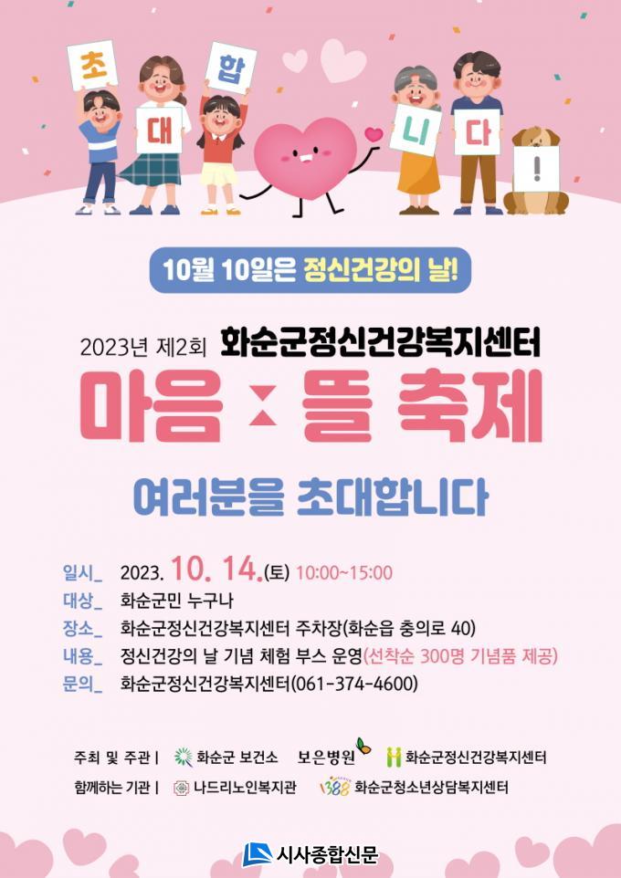 10¿ù 14ÀÏ(Åä) ¿ÀÀü 10½ÃºÎÅÍ ¿ÀÈÄ 3½Ã±îÁö ȼø±º Á¤½Å°Ç°º¹Áö¼¾ÅÍ ÁÖÂ÷Àå¿¡¼ ÁøÇàµÇ´Â À̹ø ÃàÁ¦´Â ȼø±º Á¤½Å°Ç°º¹Áö¼¾ÅÍ(¼¾ÅÍÀå ±è°æÈ¯)°¡ ÁÖ°üÇϸç ȼø±º º¸°Ç¼Ò, ³ªµå¸®³ëÀκ¹Áö°ü, ȼø±º û¼Ò³â »ó´ãº¹Áö¼¾ÅͰ¡ ÇÔ²² ´Ù¾çÇÑ Ã¼Çè °Å¸®¿Í Á¤º¸¸¦ Á¦°øÇÑ´Ù.