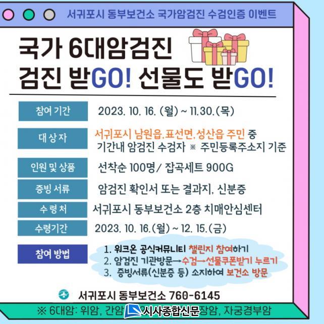 | ¼±ÍÆ÷½Ã µ¿ºÎº¸°Ç¼Ò, ¡®±¹°¡ 6´ë ¾Ï°ËÁø, °ËÁø¹ÞGO ¼±¹° ¹ÞGO 縰Áö ÁøÇà ±¹°¡ ¾Ï°ËÁø ¿Ï·á ÀÎÁõ 縰Áö¿¡ Âü¿©Çϼ¼¿ä!