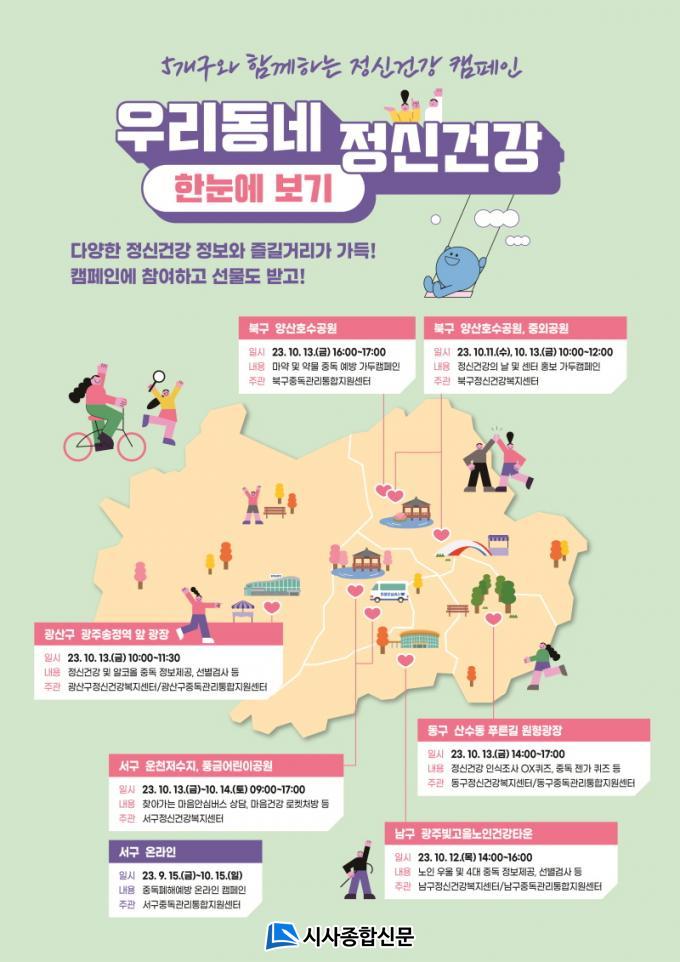 ÀÚ¼¼ÇÑ ³»¿ëÀº °Ë»öâ¿¡ ¡®±¤ÁÖ Á¤½Å°Ç° ¹®ÈÇà»ç¡¯¸¦ °Ë»öÇϰųª ±¤ÁÖ±¤¿ªÁ¤½Å°Ç°º¹Áö¼¾ÅÍ(062-600-1953, 1954)·Î ¹®ÀÇÇÏ¸é µÈ´Ù. ÇÑÆí ±¤Áֽô ½Ã¹Î Á¤½Å°Ç°À» À§ÇØ ±¤¿ªÁ¤½Å°Ç°º¹Áö¼¾Å͸¦ ºñ·ÔÇØ ÀÚÄ¡±¸¸¶´Ù 1°³¾¿ ±âÃÊÁ¤½Å°Ç°º¹Áö¼¾ÅÍ¿Í Áßµ¶°ü¸®ÅëÇÕÁö¿ø¼¾Å͸¦ ¿î¿µÇϰí ÀÖ´Ù.
