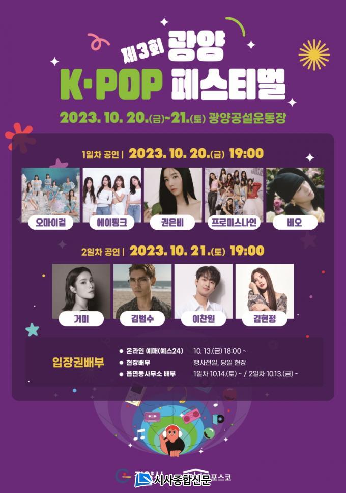 ¿ÃÇØ·Î 3ȸ°¸¦ ¸Â´Â ±¤¾ç K-POP Æä½ºÆ¼¹úÀº ¿À¸¶À̰É, ¿¡ÀÌÇÎÅ©, ±ÇÀººñ, ÇÁ·Î¹Ì½º³ªÀÎ, ºñ¿À µî ÃÖ° ¶óÀξ÷ÀÇ ¡®K-POP¡¯ °ø¿¬°ú °Å¹Ì, ±è¹ü¼ö, ÀÌÂù¿ø, ±èÇöÁ¤ µîÀÌ Ã⿬ÇÏ´Â ¡®7080 & Æ®·Ô¡¯ °ø¿¬ µî ¿¬ÀÌÆ² ÃàÁ¦ ºÐÀ§±â ¼Ó¿¡¼ ½Ã¹Î°ú °ü±¤°´À» ¸ÂÀ» °èȹÀÌ´Ù.