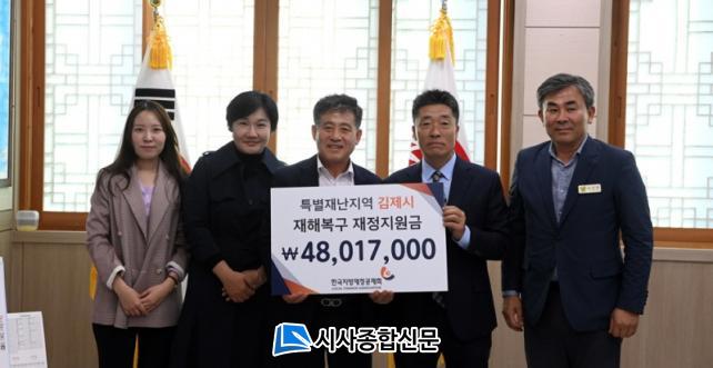 ±èÁ¦½Ã°¡ Áö³ 12ÀÏ ±èÁ¦½Ãû ½ÃÀå½Ç¿¡¼ Çѱ¹Áö¹æÀçÁ¤°øÁ¦È¸·ÎºÎÅÍ Æ¯º°Àç³Áö¿ª ÀçÇØº¹±¸ ÀçÁ¤Áö¿ø±Ý 4,800¸¸ ¿øÀ» Àü´Þ¹Þ¾Ò´Ù. À̳¯ Àü´Þ½Ä¿¡´Â Á¤¼ºÁÖ ±èÁ¦½ÃÀå°ú ±è¼º±¸ Çѱ¹Áö¹æÀçÁ¤°øÁ¦È¸ È£³²±¤¿ª¼¾ÅÍÀå µî ¾ç ±â°ü °ü°èÀÚ°¡ Âü¼®Çß´Ù.