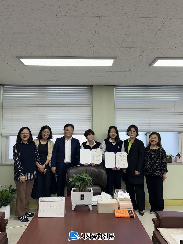 [½Ã»çÁ¾ÇսŹ® = °í¼º¹Î ±âÀÚ] Á¦ÁÖÁß¾Ó¿©ÀÚÁßÇб³(±³Àå ¼Èñ¼ø) Çлý µÎ ¸íÀº Áö³ 11ÀÏ Á¦ÁÖÀºÇàºÀ»ç´Ü ÀåÇбÝÀ» ¹Þ¾Ò´Ù.