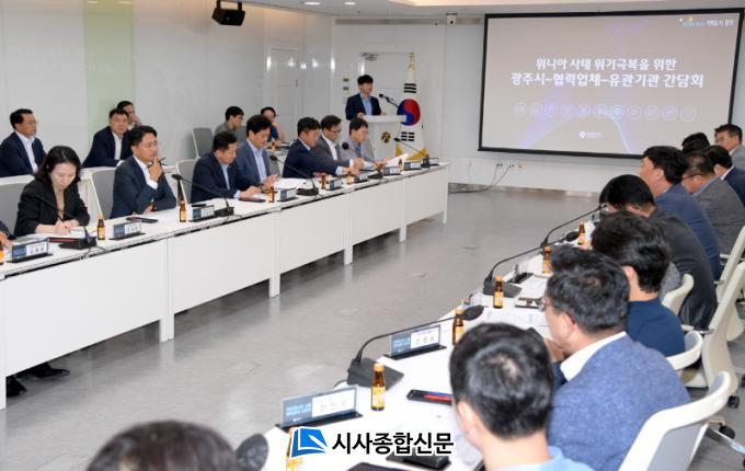 À̳¯ °£´ãȸ´Â ±è±¤Áø ±¤Áֽù®È°æÁ¦ºÎ½ÃÀå µî ±¤Áֽà °ü°èÀÚ¸¦ ºñ·ÔÇØ ±â¾÷ÀºÇࡤ»ê¾÷ÀºÇࡤ±¤ÁÖÀºÇࡤÇϳªÀºÇࡤ½ÅÇÑÀºÇà µî ±ÝÀ¶±â°ü, ±¤ÁÖÀü³²Áß¼Òº¥Ã³±â¾÷û¡¤Áß¼Òº¥Ã³±â¾÷ÁøÈï°ø´Ü ±¤ÁÖÁö¿ªº»ºÎ¡¤±¤Áֽſ뺸Áõ±â±Ý¡¤±â¼úº¸Áõ±â±Ý¡¤±¤ÁÖÅ×Å©³ëÆÄÅ© µî Áö¿ª ±â¾÷ Áö¿ø±â°üµéÀÌ Âü¼®ÇØ ¾î·Á¿òÀ» °Þ°í ÀÖ´Â Áö¿ª Áß¼ÒÇù·Â¾÷üµéÀÇ ¾Ö·Î»çÇ×À» ûÃëÇϰí Áö¿ª °æÁ¦ ÇÇÇØ ÃÖ¼Òȸ¦ À§ÇÑ ´ëÃ¥µéÀ» ³íÀÇÇß´Ù.