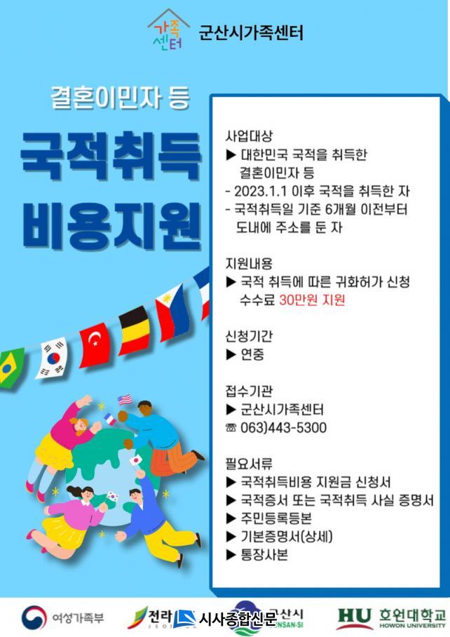 | ±º»ê½Ã, °áÈ¥À̹ÎÀÚ ±¹ÀûÃëµæ ºñ¿ëÁö¿ø »ç¾÷ ÃßÁø °áÈ¥À̹ÎÀÚ ±¹ÀûÃëµæÀ» ÅëÇÑ ¾ÈÁ¤ÀûÀÎ Áö¿ªÁ¤Âø Áö¿ø |