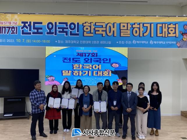 ¡®¿Ü±¹ÀÎ Çѱ¹¾î ¸»Çϱ⠴ëȸ¡¯´Â 2007³âºÎÅÍ À̾îÁ® ¿À°í ÀÖÀ¸¸ç Á¦ÁÖµµ¸¦ ´ëÇ¥ÇÏ´Â Çѱ۳¯ ±â³äÇà»ç·Î ÀÚ¸®¸Å±èÇϰí ÀÖ´Ù. À̹ø ´ëȸ Âü°¡ÀÚ´Â ÀϹݺΠ15¸í°ú ´ëÇкΠ9¸í µî 9°³±¹¿¡¼ ÃÑ 24¸íÀ̸ç, ±× ¿Ü Âü°¡ÀÚÀÇ °¡Á·°ú ÁöÀÎ µî 50¿© ¸íÀÌ Çà»çÀå¿¡ ÇÔ²²Çß´Ù. ´ëȸ °á°ú Àεµ³×½Ã¾Æ Ãâ½Å ÆÄÅ÷´Ï»ç ¼ÒǪ¶ó ¾Æ±â½º´Ù ¾¾°¡ ´ë»óÀ», Áß±¹ Ãâ½ÅÀÇ ÀÌ¿ìÈç ¾¾°¡ Àαâ»óÀ» ¼ö»óÇß´Ù.