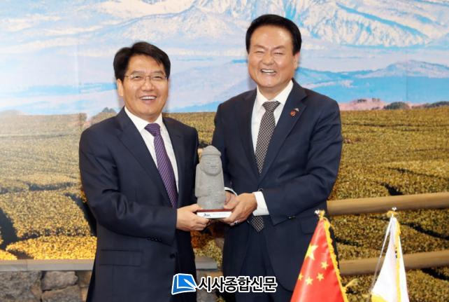 ¿ÃÇØ Á¦ÁÖµµ-»êµÕ¼º ±³·ù 15ÁÖ³âÀ» ¸ÂÀÌÇÏ¿© Á¦ÁÖ¸¦ ¹æ¹®ÇÑ »êµÕ¼º ºÎ¼ºÀå ÀÏÇà, ¸ÕÀú ±èÈñÇö Á¤¹«ºÎÁö»ç¿Í ¸é´ãÀ» °¡Áö°í ±³·ù Ȱ¼ºÈ ¹æ¾ÈÀ» ¸ð»öÇÏ¿´´Ù. ¶ÇÇÑ, Á¦ÁÖµµÀÇ Æ¯»ö ÀÖ´Â ÀüÅë¹®È ÇØ³à¹®È¿¡ °ü½ÉÀÌ ÀÖ´Ù¸ç, »êµÕ¼º¿¡ ÇØ³à¹®È¸¦ È«º¸Çϱâ À§ÇØ ÇØ³à¹®ÈŽ¹æ¿¡ ³ª¼±´Ù.