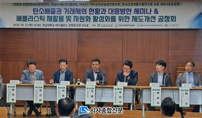 »çȸ´Â ±èÀº½Ä Àü³²³ì»öȯ°æÁö¿ø¼¾ÅÍÀåÀÌ ¸Ã¾ÒÀ¸¸ç, ÁÖÁ¾¼· ÀÇ¿ø, ¿©¼ö½Ã¤ý¿©¼ö»ê´Ü°øµ¿¹ßÀüÇùÀÇȸ ±è½Å »ç¹«±¹Àå, Çѱ¹°Ç¼³»ýȰȯ°æ½ÃÇ迬±¸¿ø È£³²º»ºÎ º¯È£¼® ¹Ú»ç, ÇÑȼַç¼Ç ¿©¼ö°øÀå ¹ÚÁ¾°É »ó¹«, Àü³²³ì»öȯ°æÁö¿ø¼¾ÅÍ ºÎ¼³¿¬±¸¼Ò ÃÖ±ÙÅ ¿¬±¸À§¿øÀÌ ÆÐ³Î Åä·ÐÀÚ·Î Âü¼®ÇØ Åº¼ÒÁ߸³ ½ÇÇöÀ» À§ÇÑ Åº¼Ò¹èÃâ±Ç °Å·¡Á¦¿Í ÆóÇÃ¶ó½ºÆ½ ÀÚ¿øÈ Á¦µµÈ ¹æ¾È¡¯À» ÁÖÁ¦·Î ¿¶í Åä·ÐÀ» ¹ú¿´´Ù.